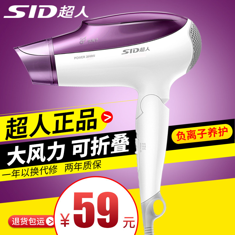 超人吹风机电吹风大功率发廊家用宾馆酒店负离子折叠风筒正品旗舰