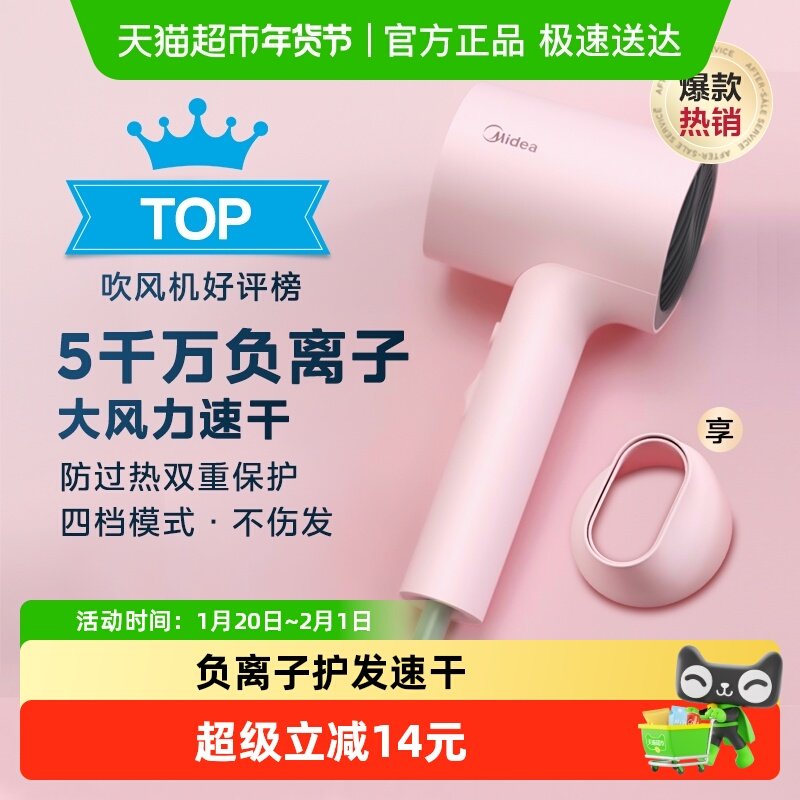 美的吹风机负离子家用护发速干电吹风大功率宿舍用学生风筒机便携