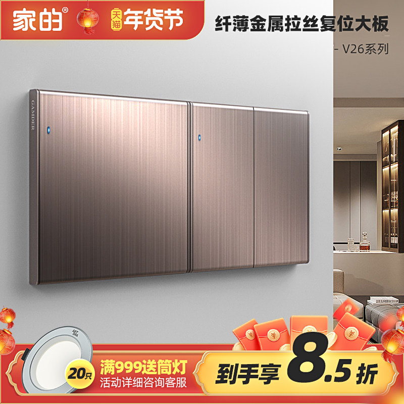 家的86型复位大板玫瑰金/灰色面板暗装五孔插座带开关家用套餐V26