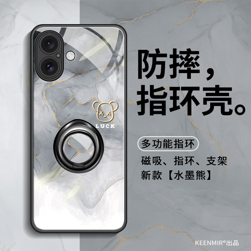 适用苹果16promax手机壳15新款pro女士13水墨熊外壳plus支架一体14套11耐脏xsmax指环扣创意xr防摔6s高端7/8p