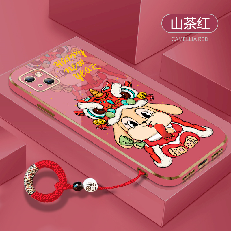 大吉大利兔年适用苹果13手机壳iPhone14指环扣12mini新年11promax红色X过xr女款xsmax电镀8plus硅胶7p/se2/6s