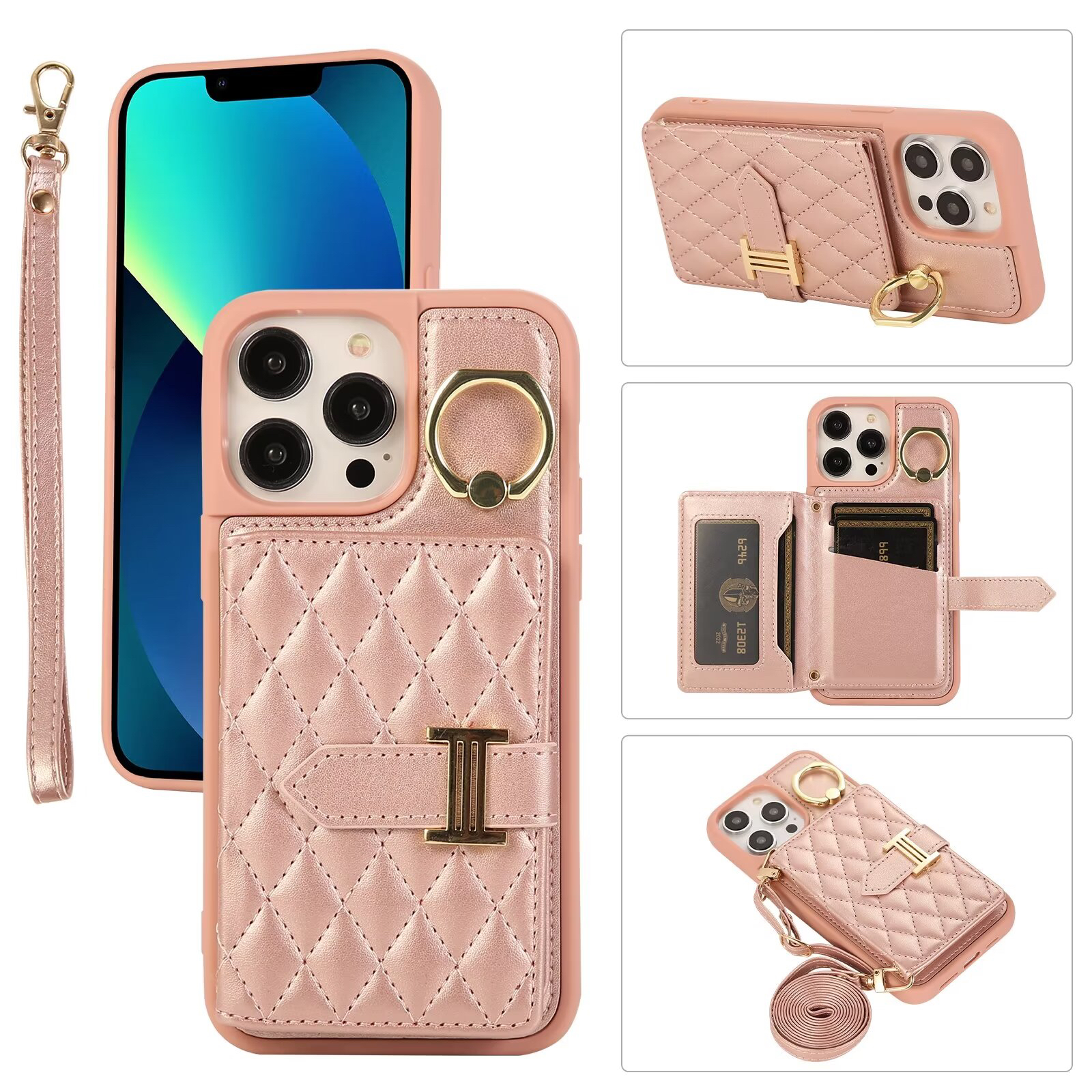 小香风横款指环扣适用iPhone17air/16/15/14promax斜挎苹果13/12/11promax/xsmax/XR翻盖手机壳6s皮套7/8plus