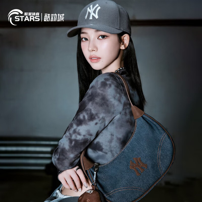 MLB美职棒包包牛仔老花包女士挎包运动休闲腋下包复古通勤单肩包