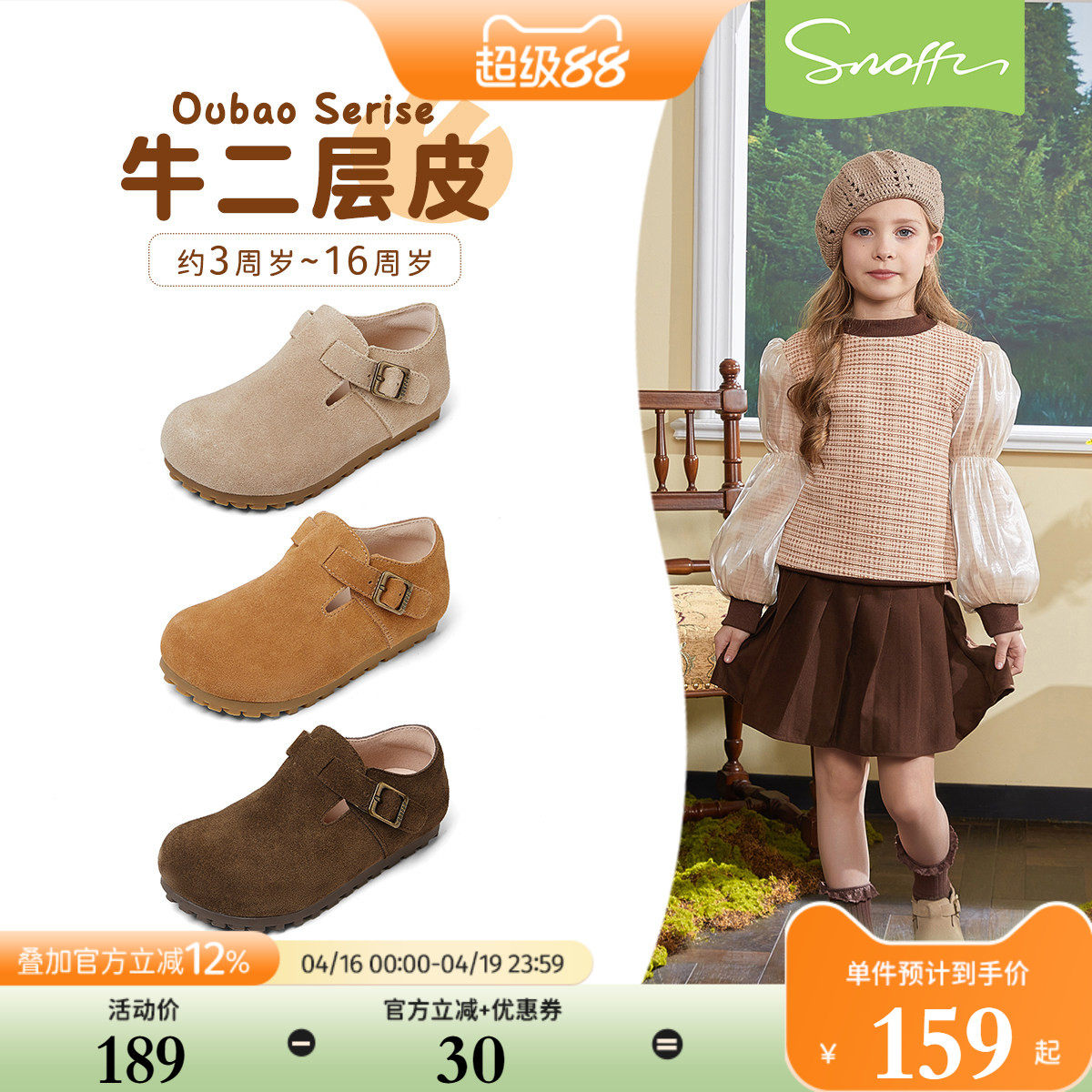 斯纳菲儿童勃肯鞋女童皮鞋2026春秋新款真皮软底防滑棉鞋宝宝鞋子