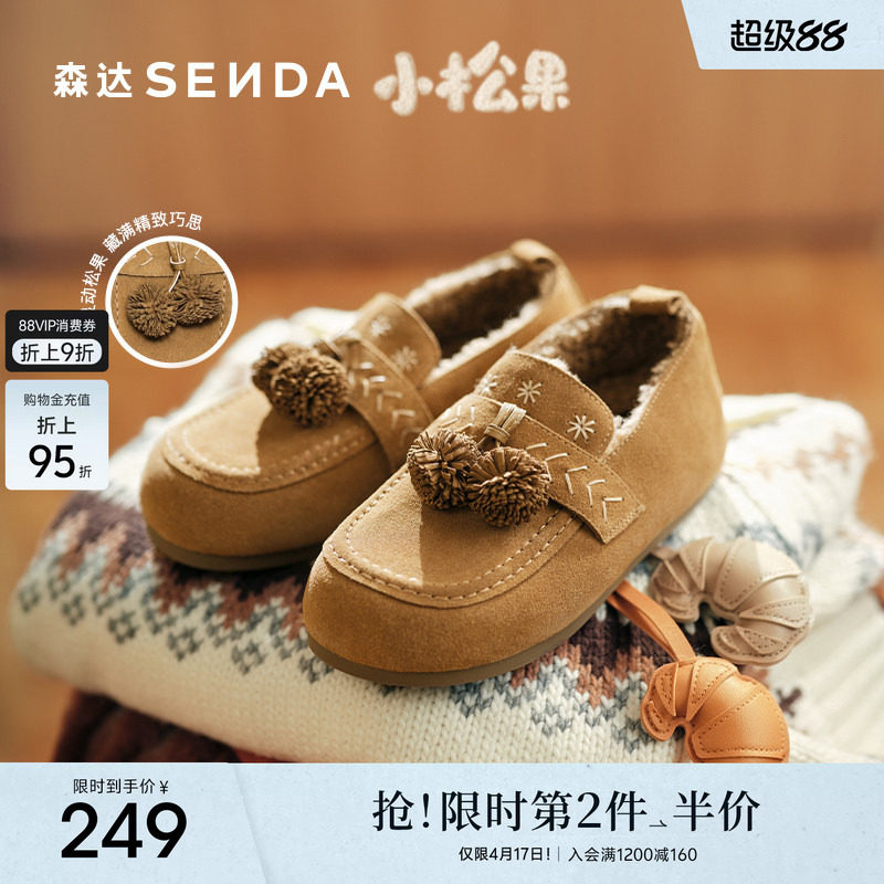 森达松果毛毛鞋女25冬新商场同款保暖真皮毛绒雪地靴棉鞋XTM01DA5