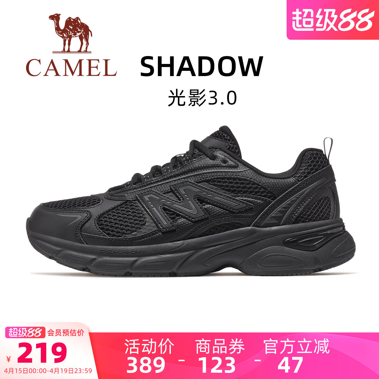 骆驼疾风3代运动鞋男黑色轻便休闲男鞋网面透气中年鞋跑步鞋男士