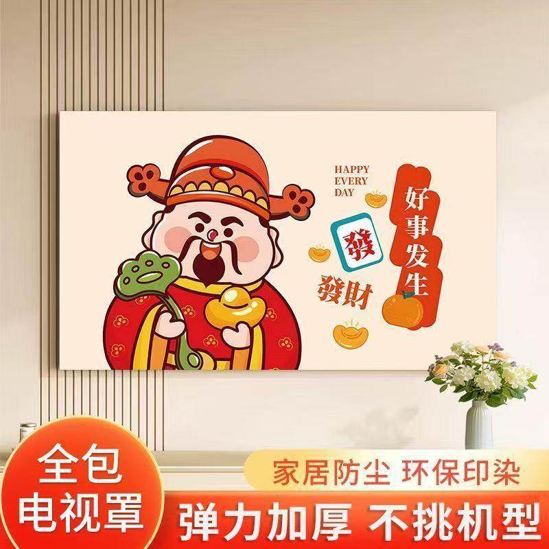 2025年款新中式电视机防尘罩套弹力全包盖布65英寸75挂式55寸曲面