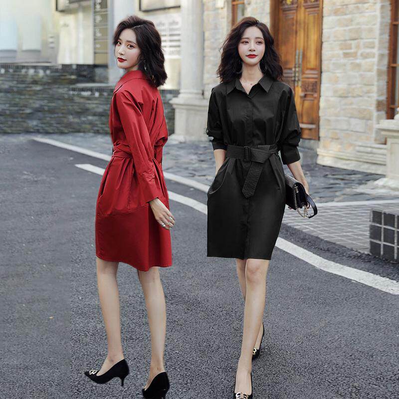 时尚长袖连衣裙2025春秋新款气质修身收腰显瘦衬衫裙子淑女中长款