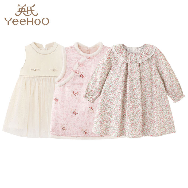 英氏25秋款童装婴幼儿衣服女宝宝童纯棉碎花可爱淑女长袖连衣裙