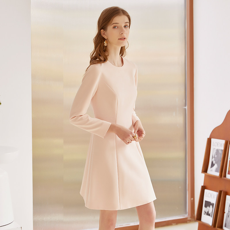 西装连衣裙2025春秋新款淑女装气质名媛修身A字裙长袖粉色大摆裙