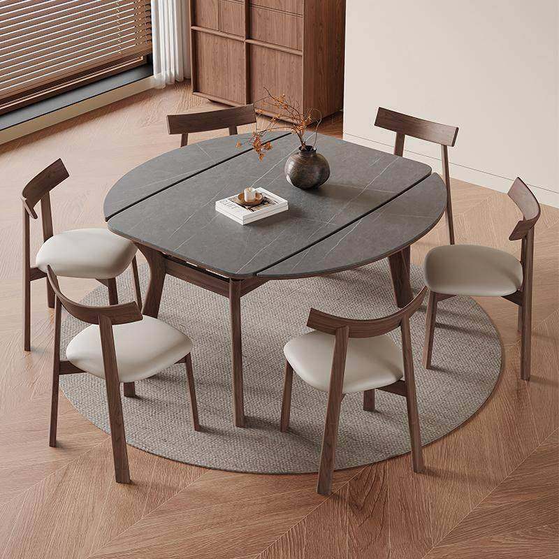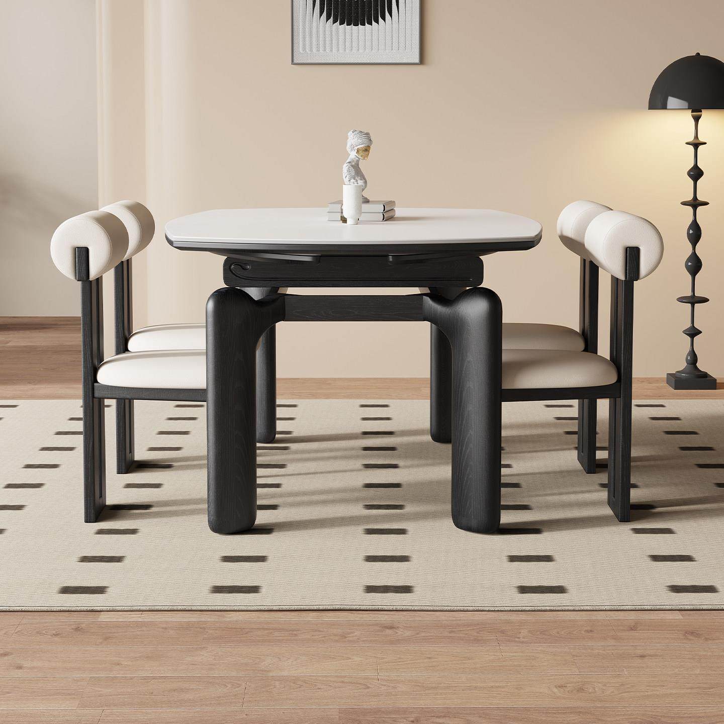 帕沙曼岩板餐桌可变圆桌折叠伸缩小户型餐桌椅升级全托款家用饭桌