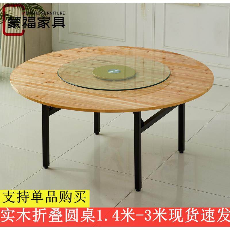 家用实木杉木大圆桌酒店包厢圆桌折叠圆形餐桌圆台面板简约带转盘