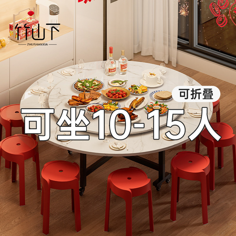 大圆桌折叠餐桌家用10人15人吃饭桌子2026新款简约带转盘圆形饭桌