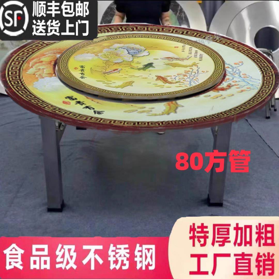 全彩图80特粗桌腿特厚不锈钢内置转盘圆桌折叠家用饭店食用免安装