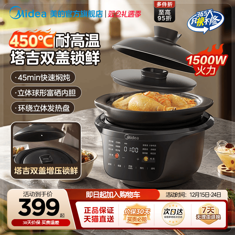 美的电炖锅煲汤锅家用全自动砂锅陶瓷炖锅炖盅煮粥烹饪机新款正品