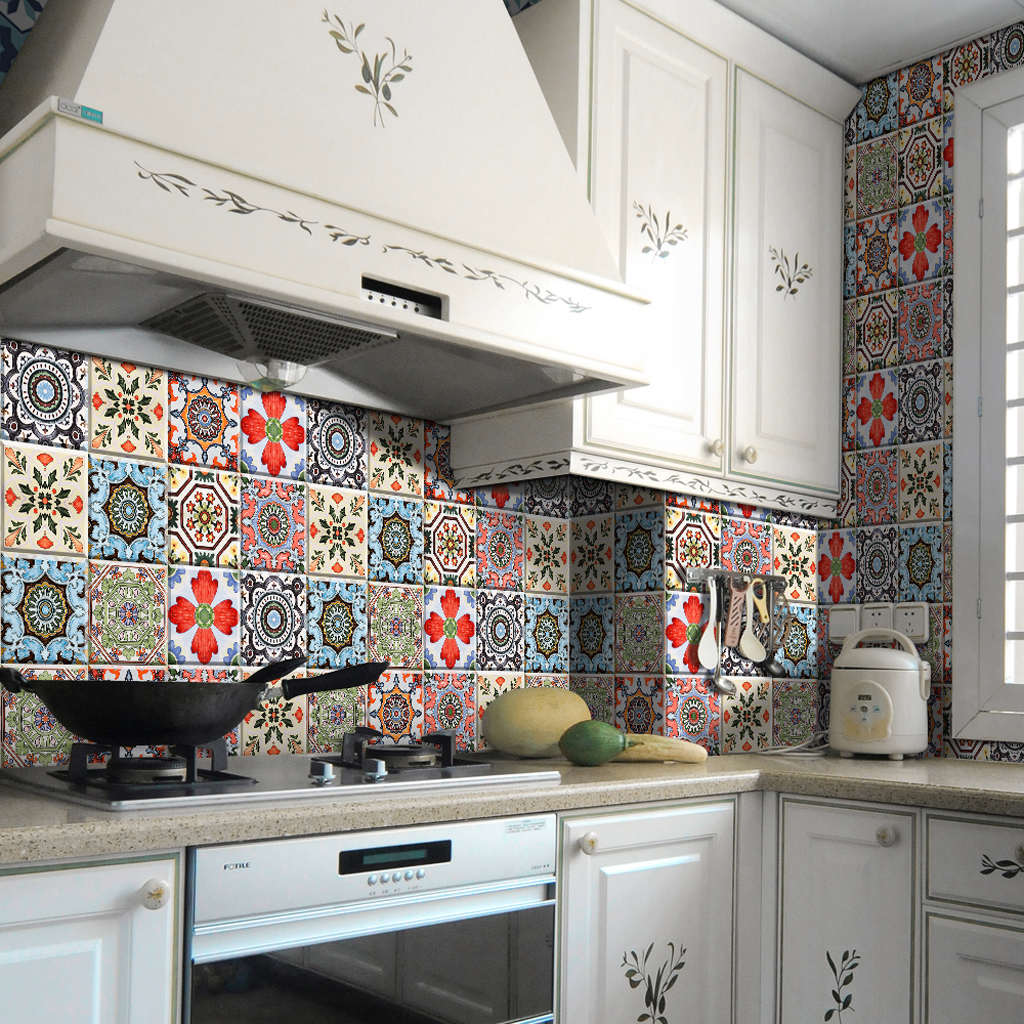 欧式瓷砖翻新厨房防油贴纸洗手间墙贴防水耐高温自粘墙纸橱柜翻新