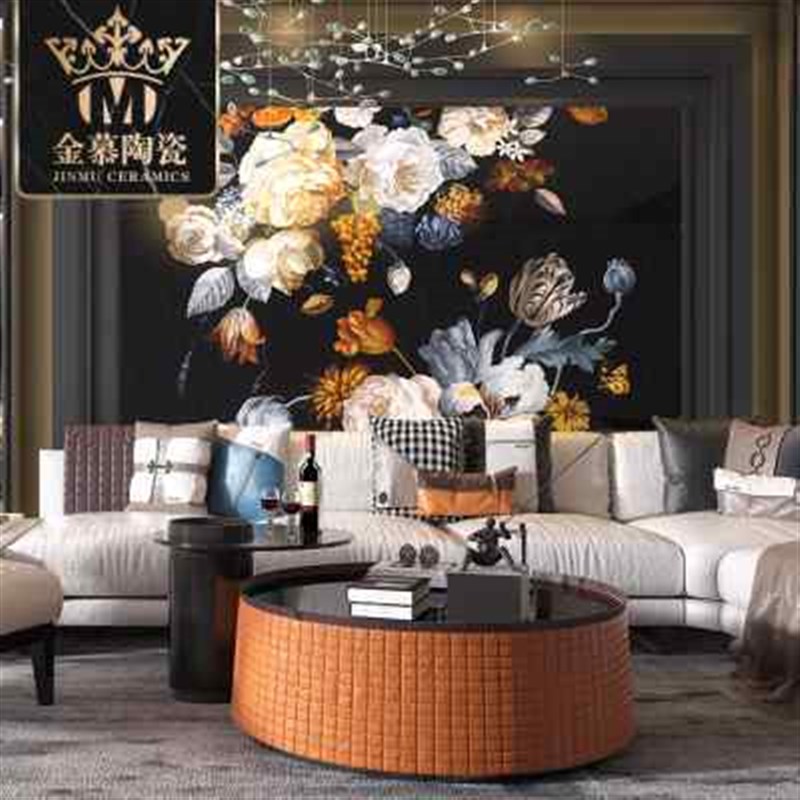 欧式瓷砖壁花繁花盛开艳丽花朵客厅电视墙玄关墙面砖房间背景墙瓷
