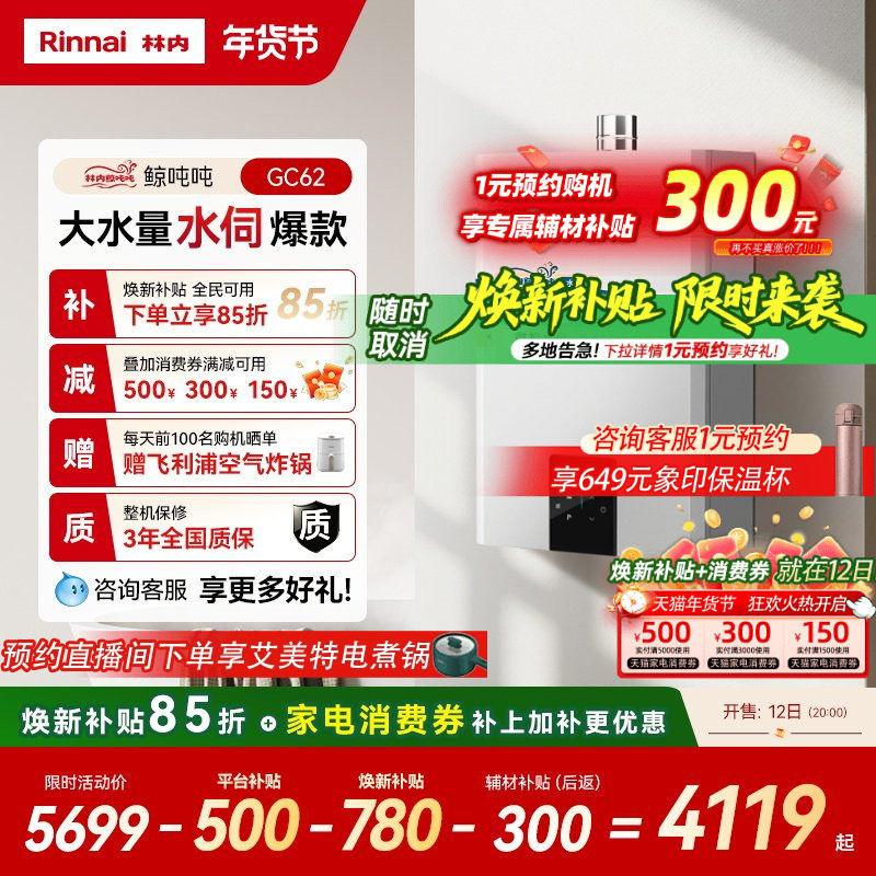 [鲸吨吨水伺服]林内燃气热水器微控恒温20/24升GC62小蛮腰Max0.5