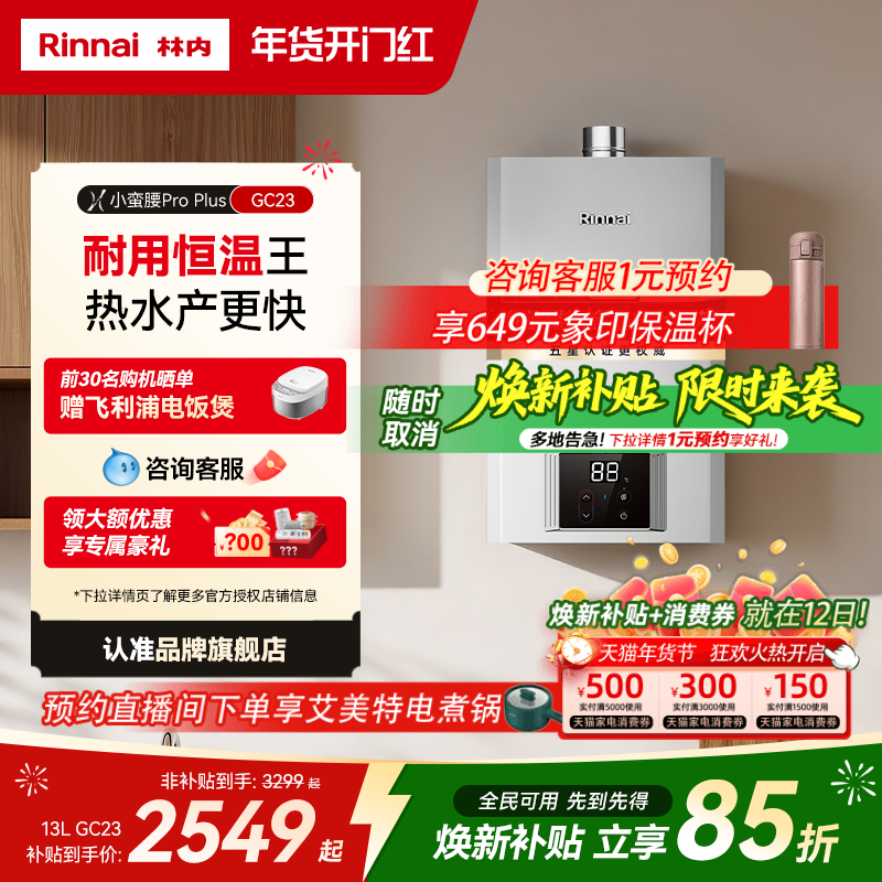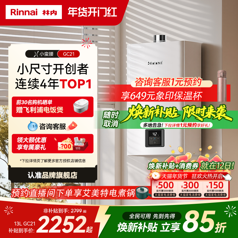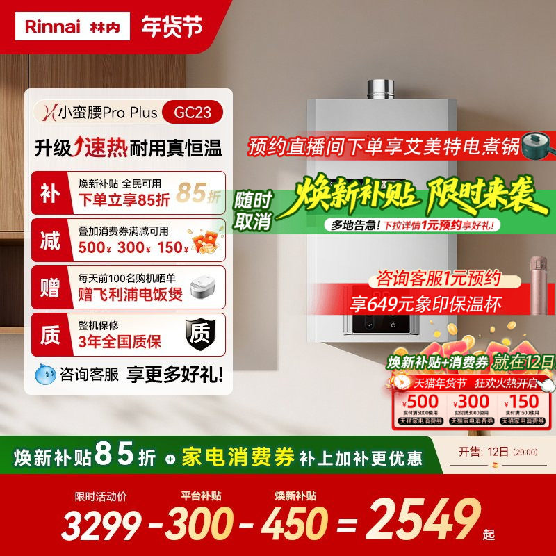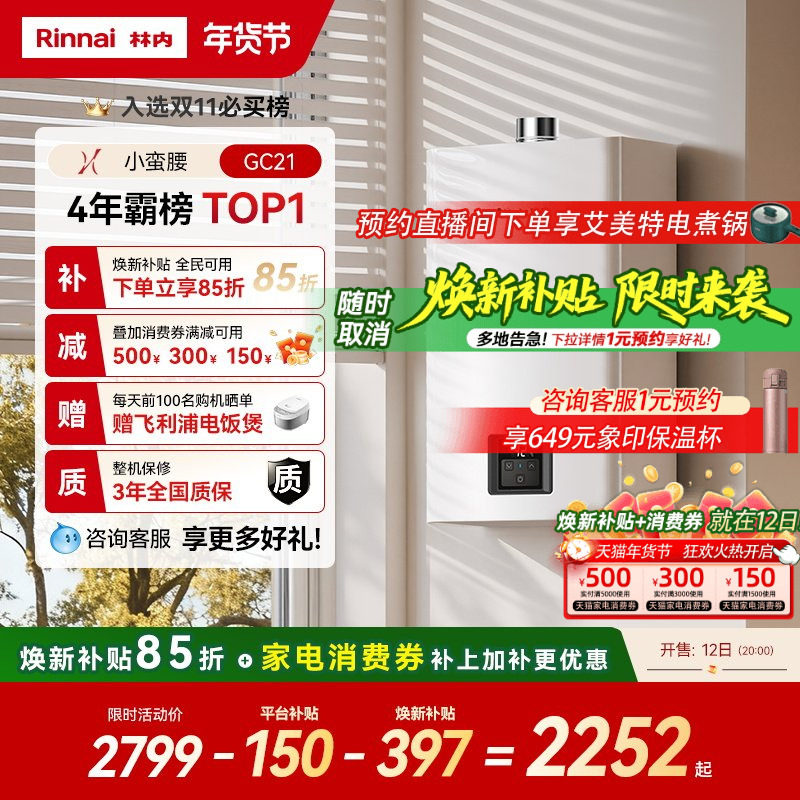 国补林内小蛮腰Pro燃气热水器GT11小尺寸智能恒温GD31降噪GD32