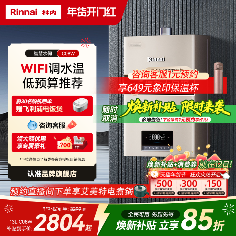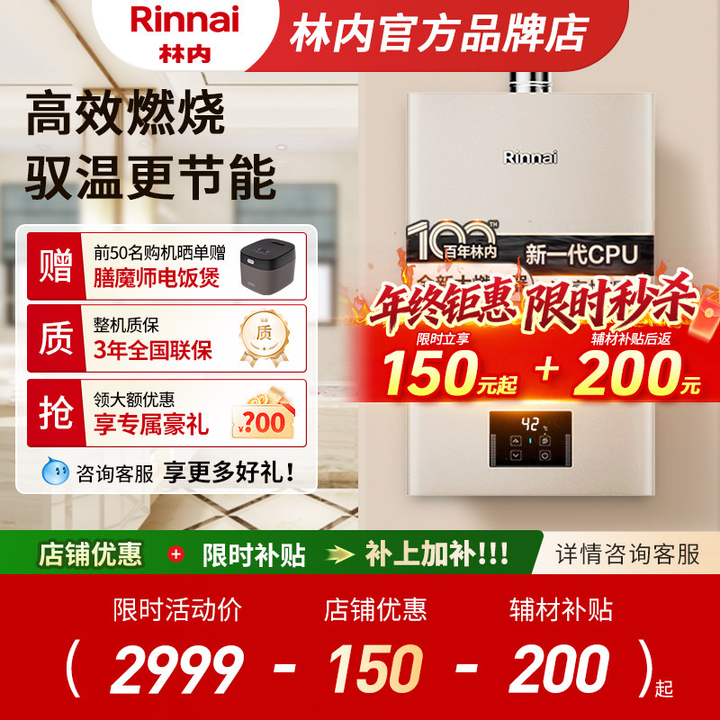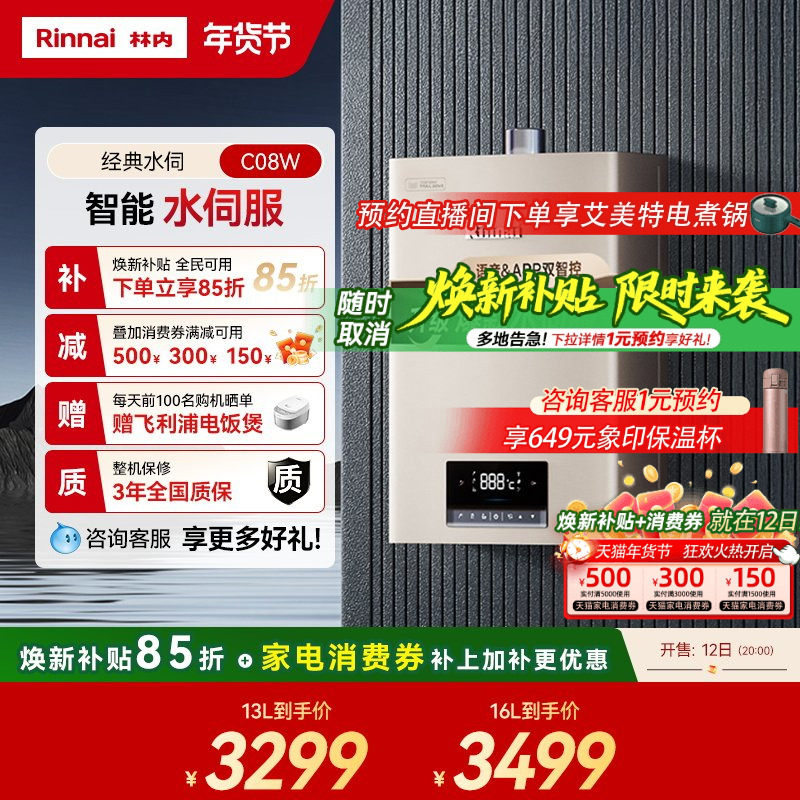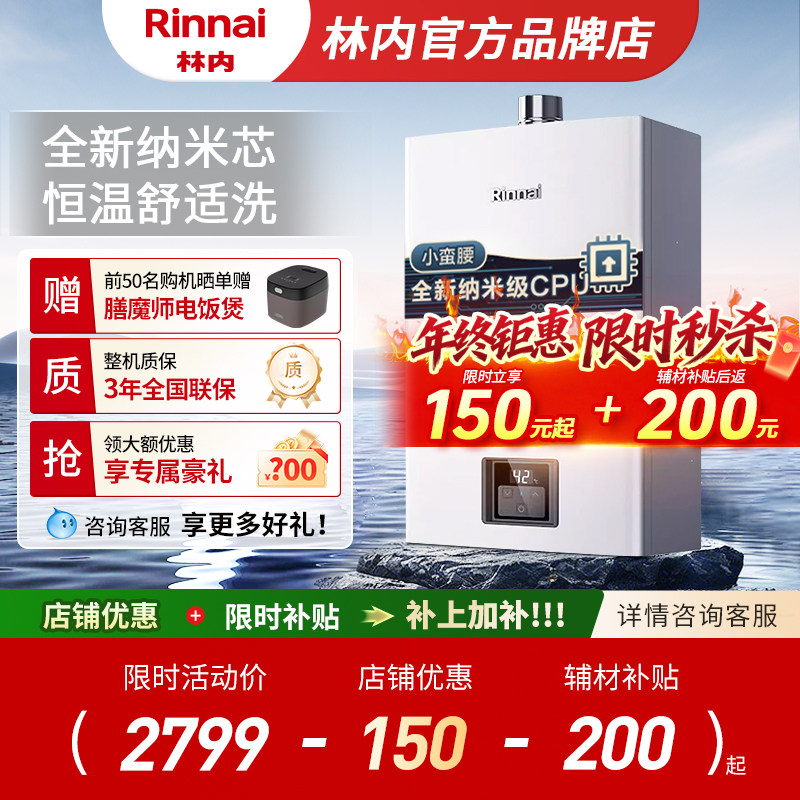 [爆款水伺服]林内燃气热水器家用恒温天然气智能洗澡13升16升C08W