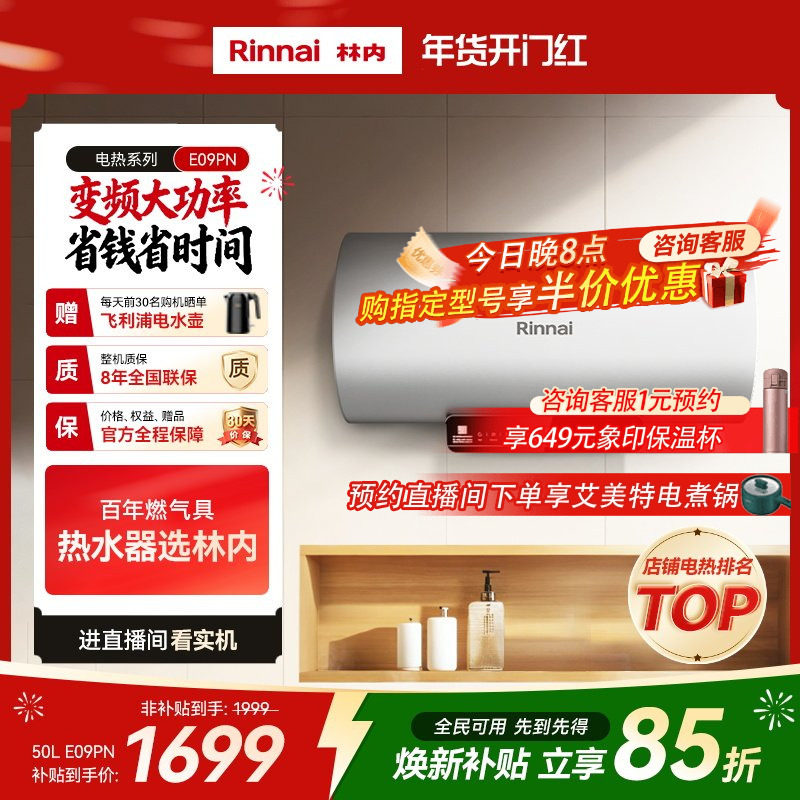 【电热推荐】林内电热水器家用速热储水50/60/80升E09PN