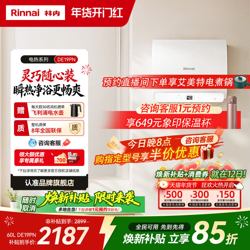 [新品电热]林内电热水器家用速热储水式免换镁棒60升DE19PN