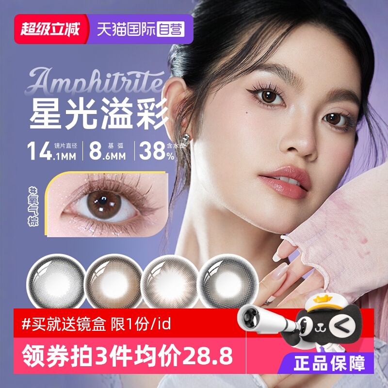 海昌星眸美瞳月抛盒2片直径隐形近视眼镜女学生官方正品混血自然