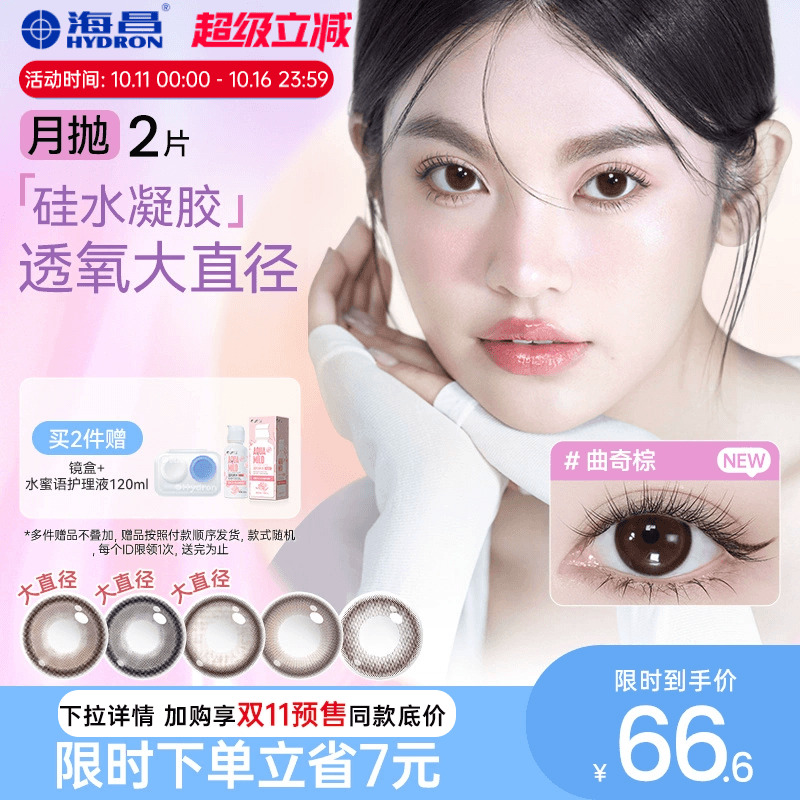 海昌美瞳月抛硅水凝胶2片隐形眼镜镜片官方旗舰店O2light高透氧