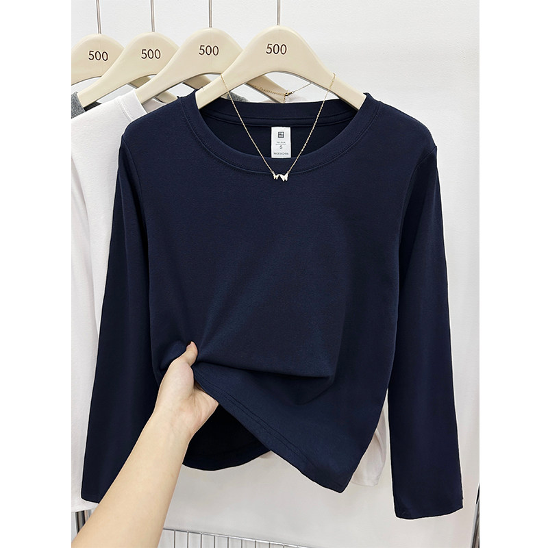 纯棉t恤女2025新款白色内搭打底衫女长袖上衣女春秋单穿大码女装