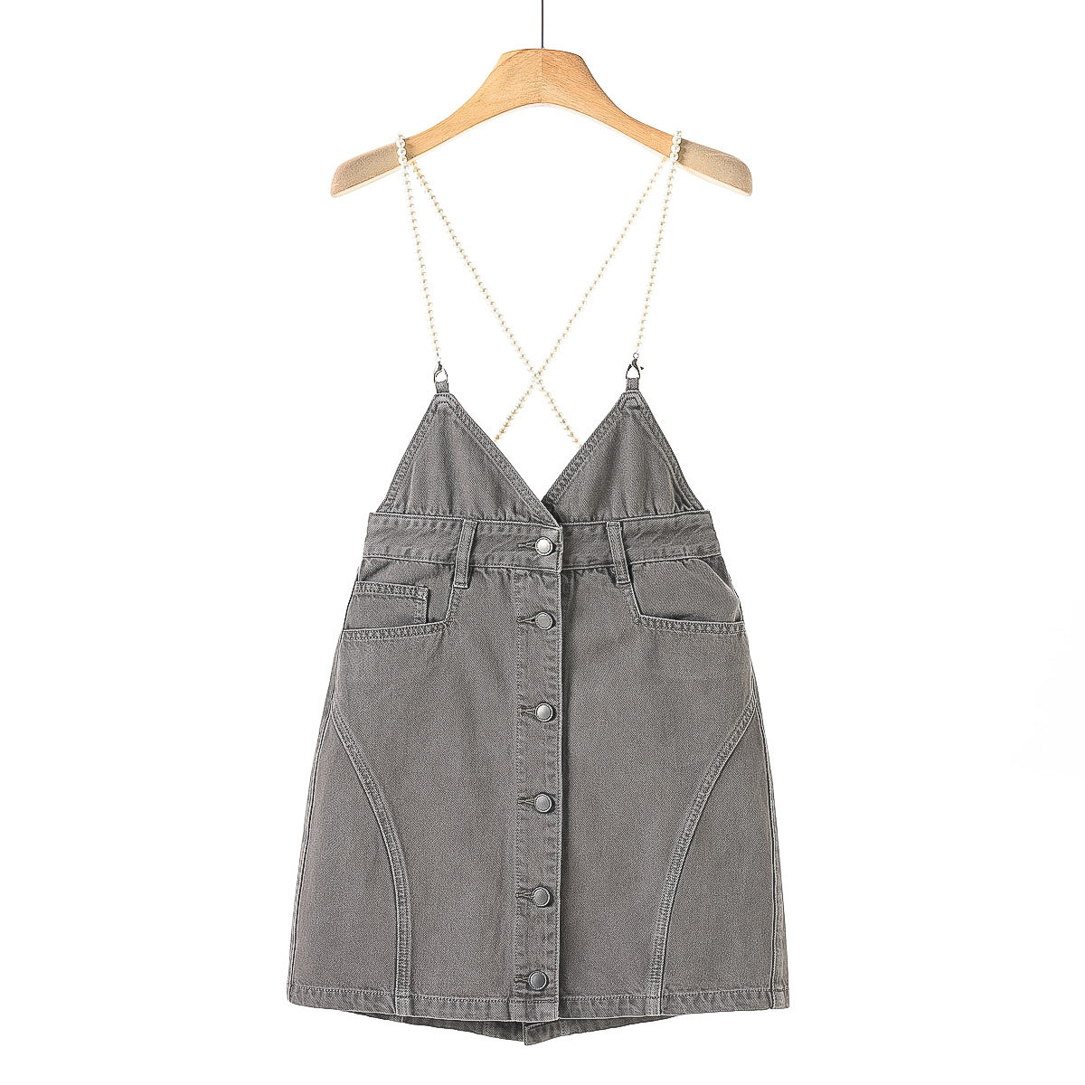 899 33.1%粘纤【帝】 珍珠链包臀背带牛仔半身裙835~夏季新款女装