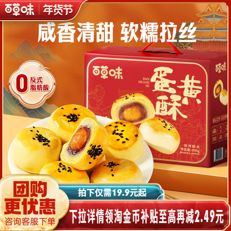 百草味蛋黄酥礼盒800g过年送礼节日年货礼盒糕点食品零食送长辈