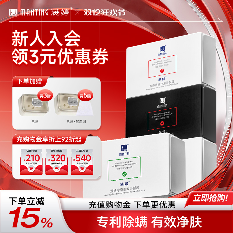 满婷皂经典款除螨香皂*5块装 去螨虫保湿 洗脸沐浴皂背部肥皂正品