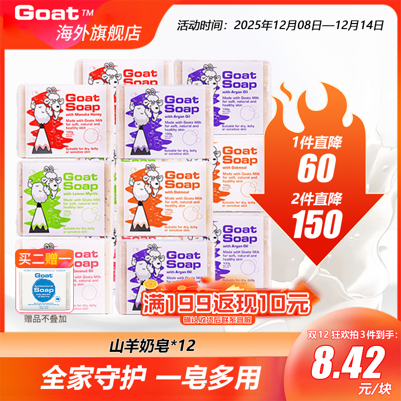 Goat澳洲进口天然手工羊奶皂100g*12块洗脸洗澡洗手补水除螨香皂