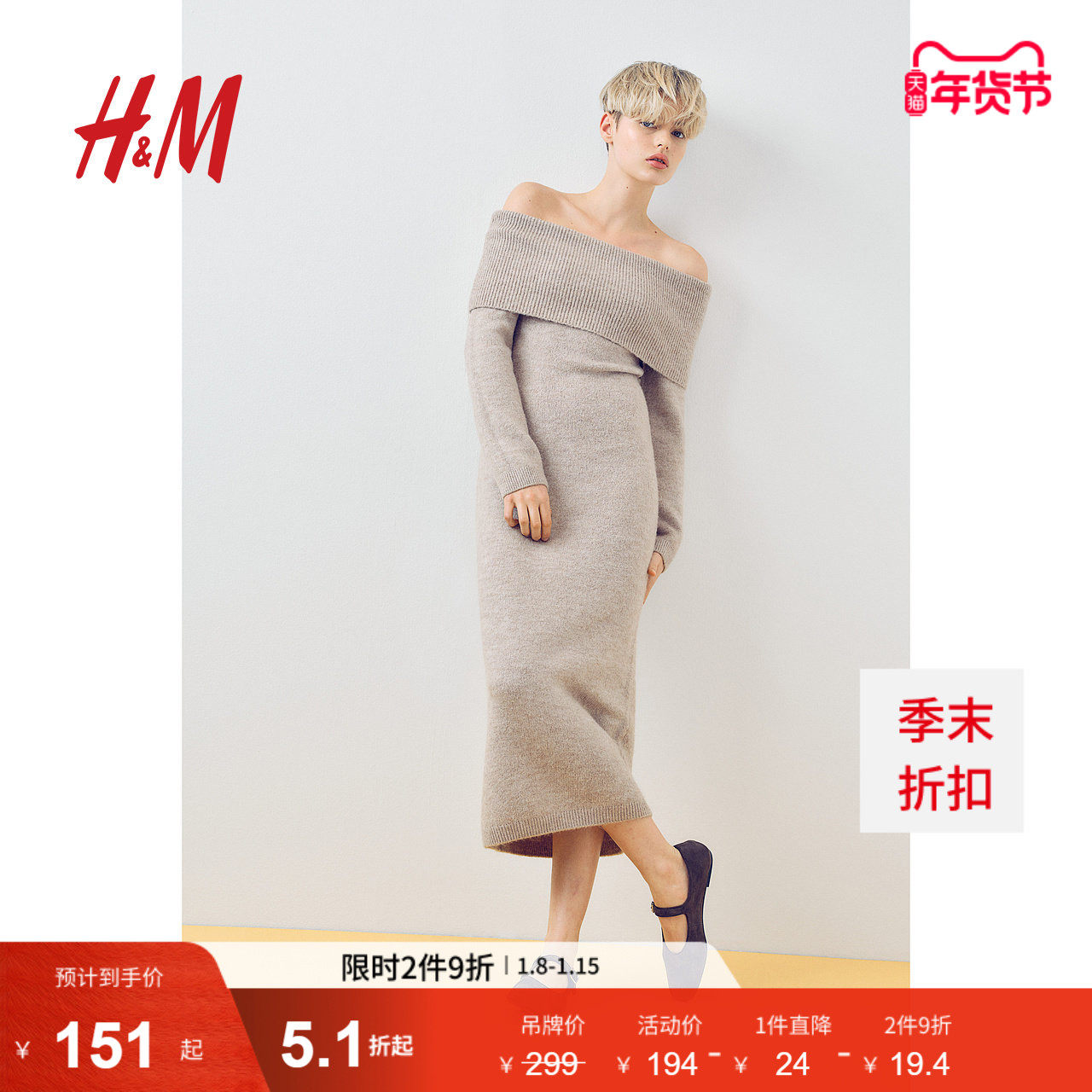 HM女装连衣裙2026春季新款衬衫式V领收腰长袖通勤连身裙1318835