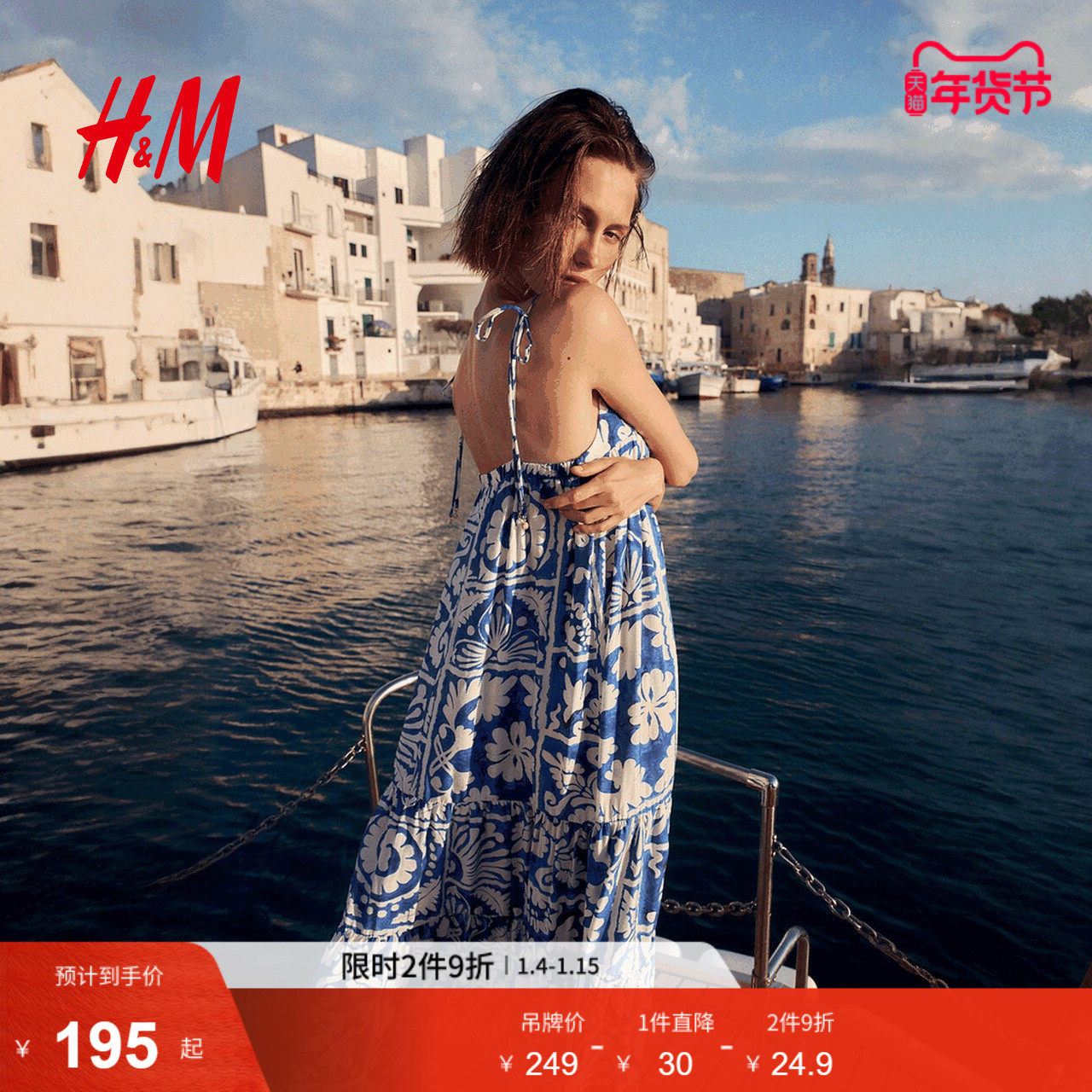 HM女装连衣裙春季吊带印花海边度假风宽松连身裙1290424