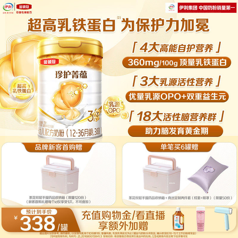 伊利金领冠珍护菁蕴3段1-3岁婴幼儿新西兰原装进口牛奶粉750g*1罐