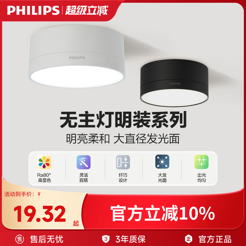 飞利浦明装筒灯led天花灯家用孔灯玄关灯吊顶走廊过道灯超薄简约