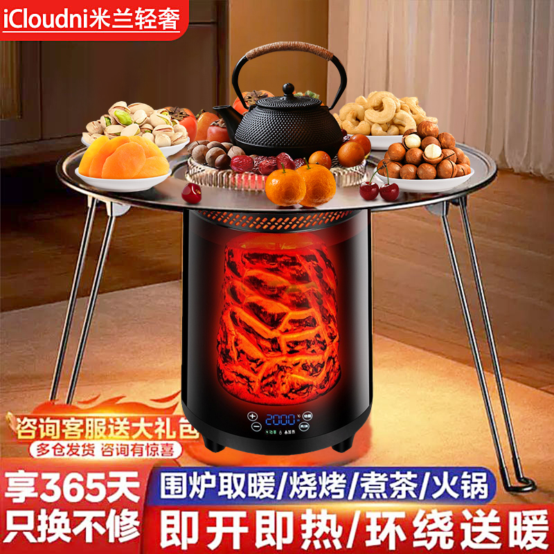 新围炉煮茶取暖器取暖炉家用室内烤火炉电暖家用节能烤火器带桌板
