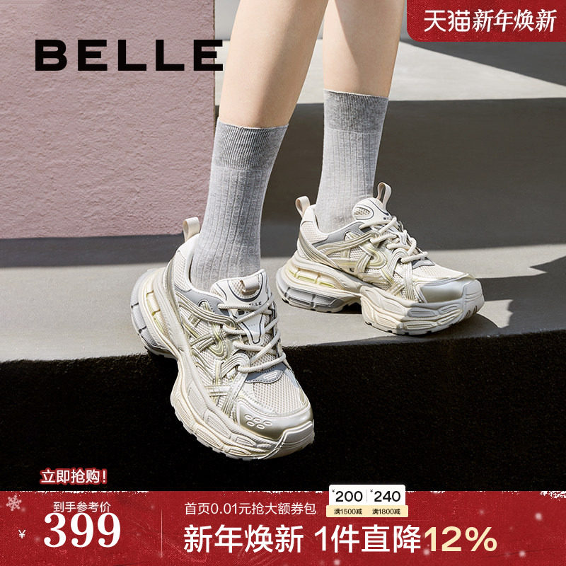 百丽女鞋子厚底老爹鞋女春季新款健步鞋运动休闲小白鞋子E3E1DCM5