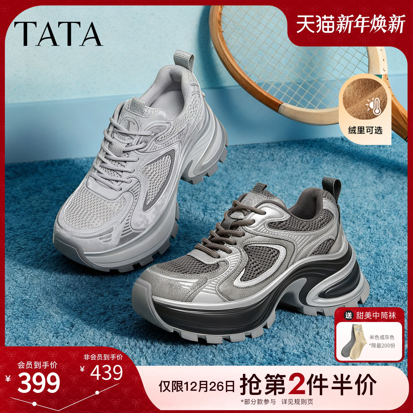 TATA他她女鞋2026春季休闲运动鞋百搭厚底增高加绒老爹鞋CZX03AM6
