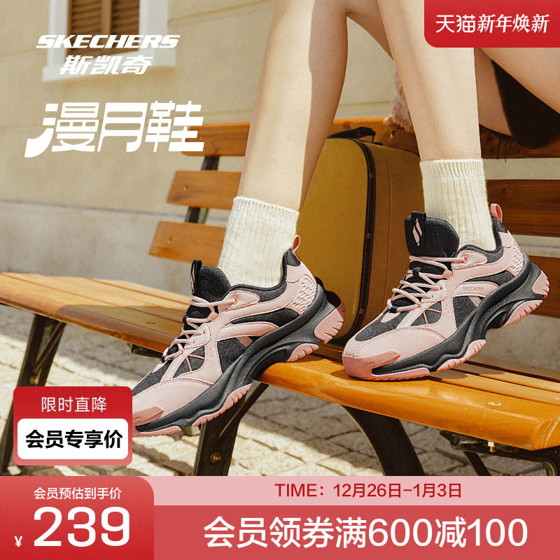 斯凯奇月影鞋|2025新款秋冬女鞋黑色老爹鞋厚底增高休闲运动鞋