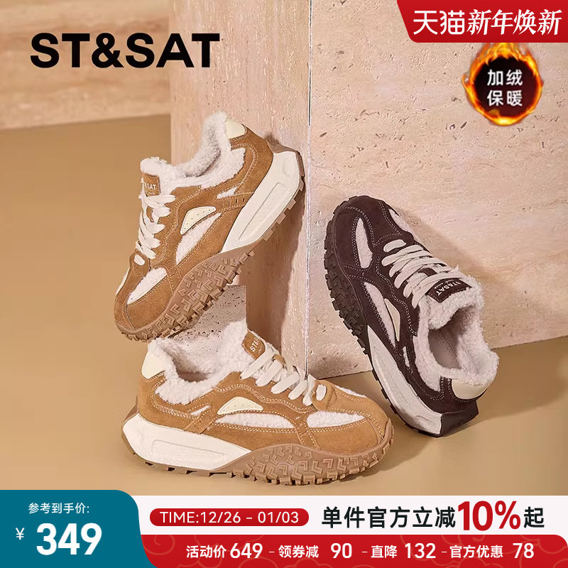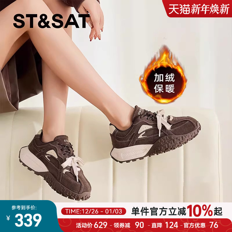星期六女鞋冬季加绒运动鞋2025新款厚底德训老爹鞋子复古休闲棉鞋