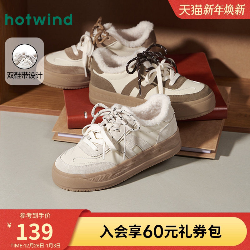 TATA他她板鞋2025冬厚底运动女鞋加绒保暖休闲鞋棉鞋子CJF01DD5