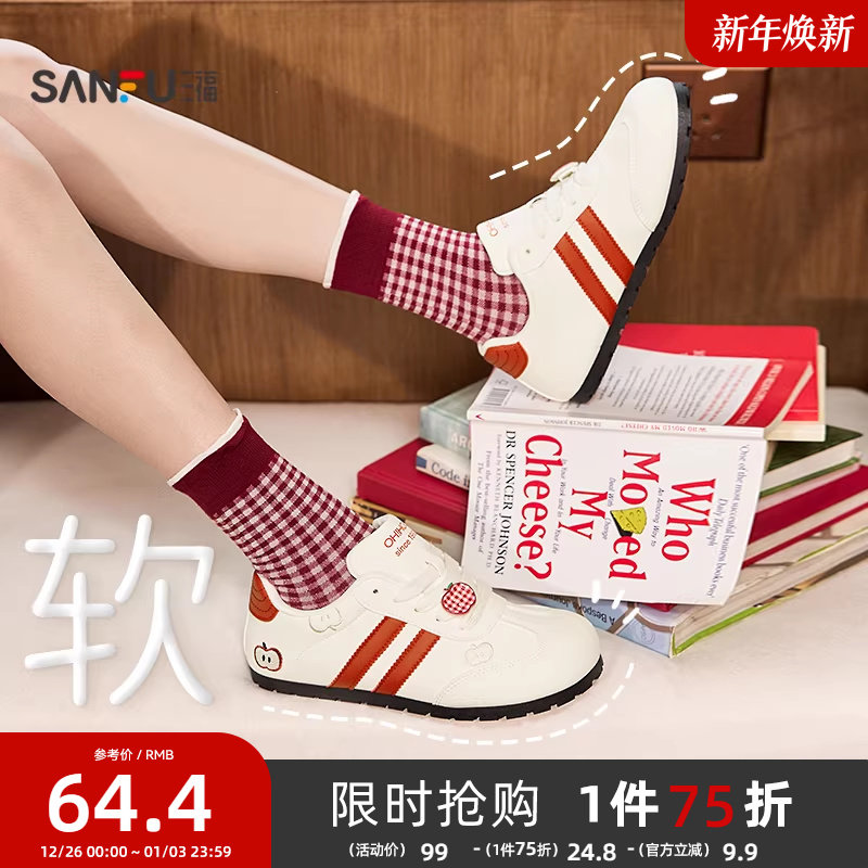 三福低帮板鞋女冬季学院运动风蝴蝶结撞色大头歪头休闲女鞋839631