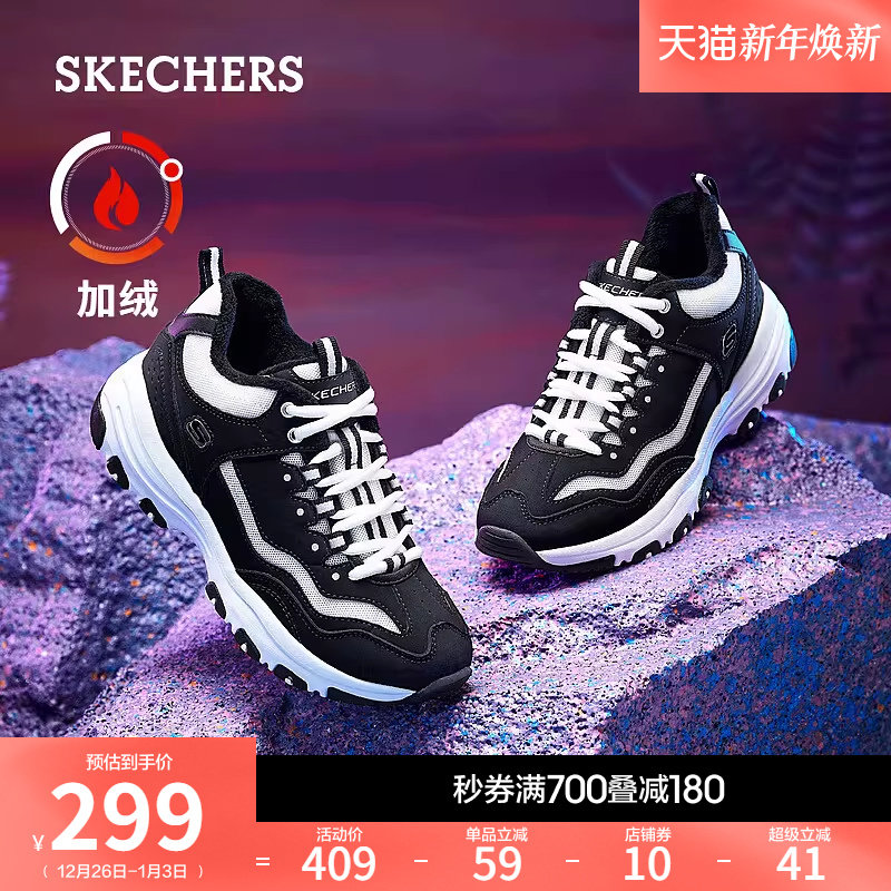 斯凯奇冬季女鞋熊猫鞋老爹鞋厚底增高运动鞋加绒绒保暖复古休闲鞋