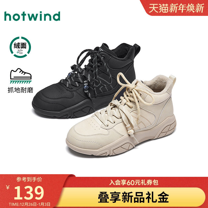 热风加绒休闲鞋女款2025年冬季新款黑色高帮赛车鞋百搭运动女鞋子