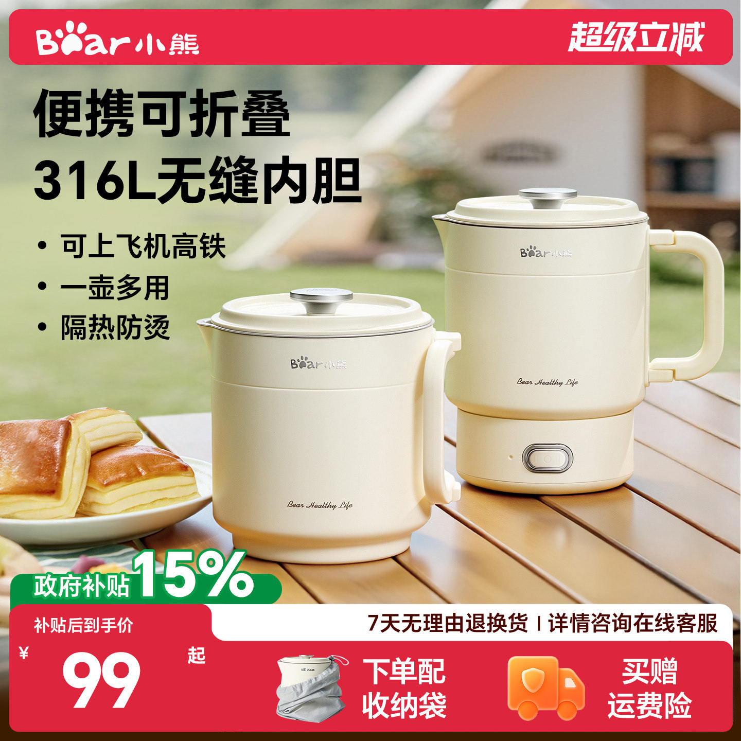 小熊便携式烧水壶折叠旅行不锈钢恒温电热水壶小型热水壶新款家用