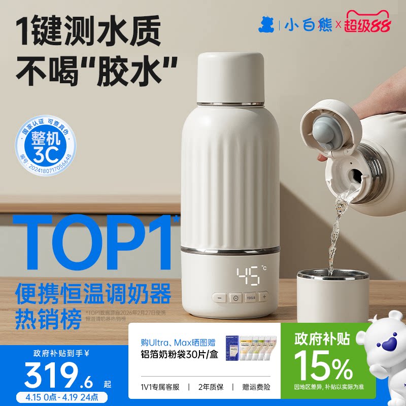 【3C认证】小白熊恒温壶婴儿冲奶外出专用便携恒温杯保温电热水壶