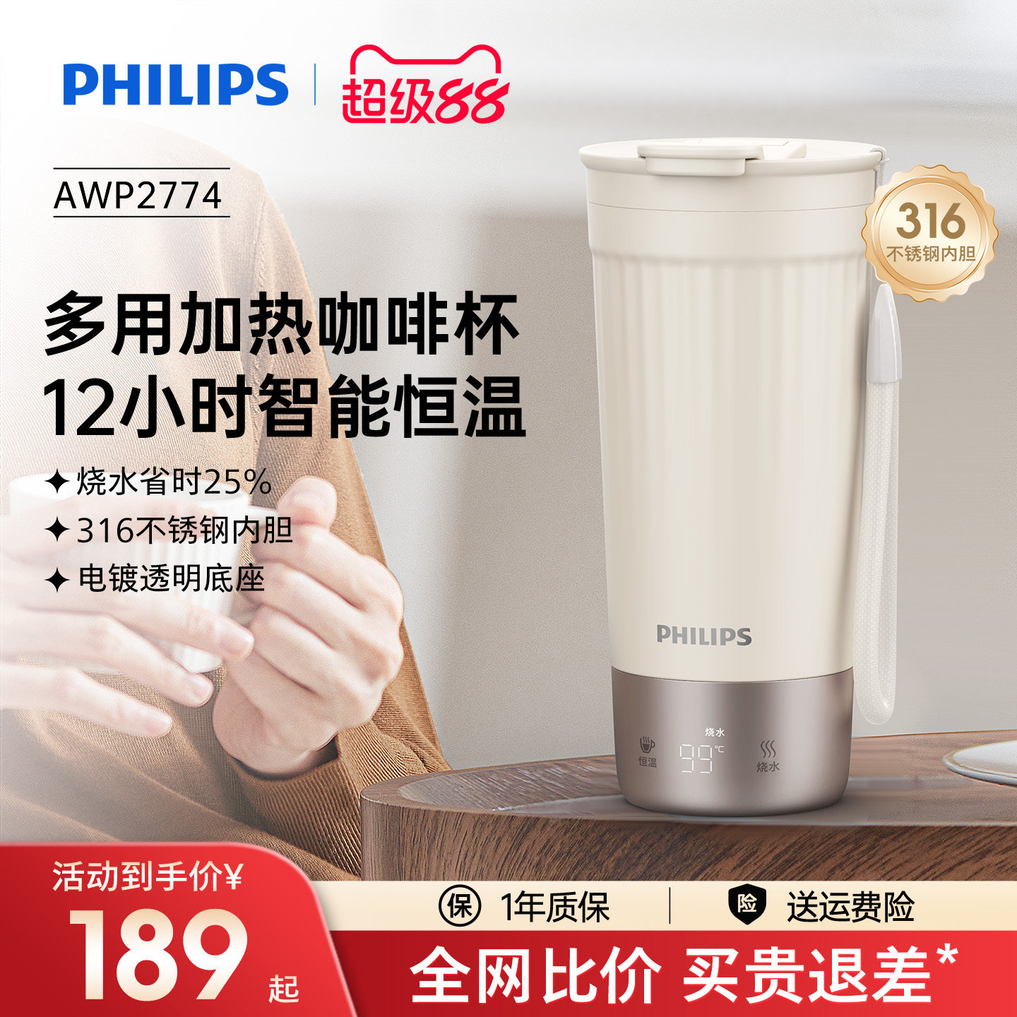 飞利浦咖啡杯烧水加热家用电热不锈钢316L户外便携式官方旗舰店