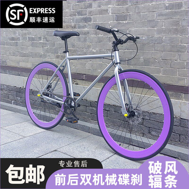 死飞自行车活飞双碟刹网红公路单车超轻学生成人男女款单车实心胎